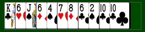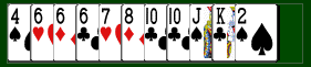 At the start of each round, the pack is shuffled and each player is dealt eleven cards. As these cards will be in no particular order, most players will want to sort them into ascending order of value.